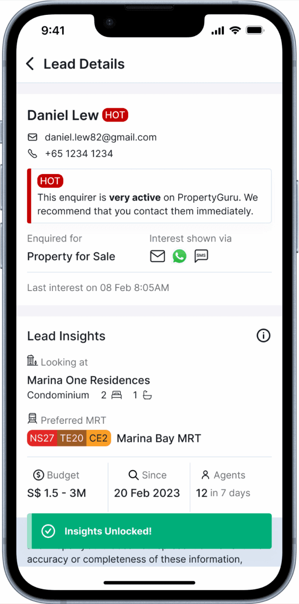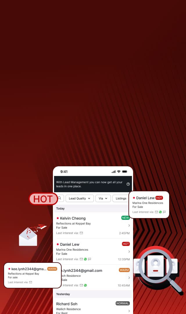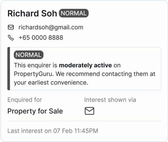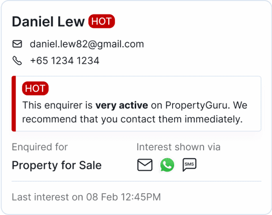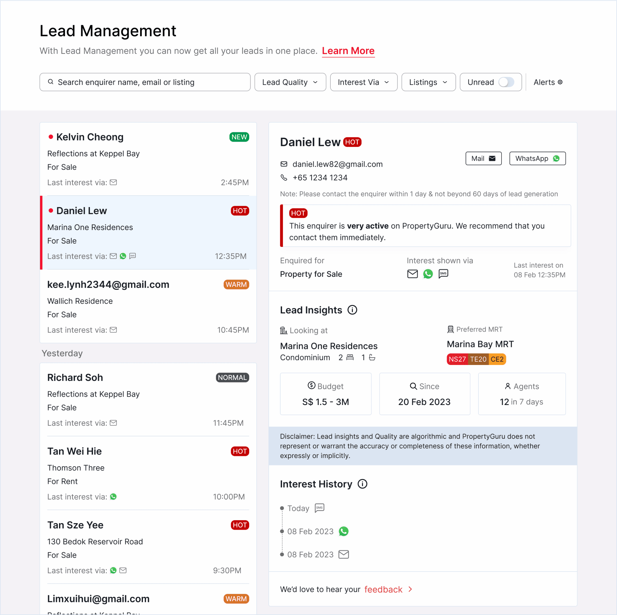 AgentNet is PropertyGuru's the leading web and app platform for real estate agents in Southeast Asia. It enables agents to create and manage listings, enhance marketing, and communicate with clients on-the-go. Lead Management is a new feature that we first released in Singapore. It helps agents organize, prioritize, and respond to potential clients efficiently. It provides insights on property seekers' preferences, and scores lead quality, enabling agents to focus on the most promising opportunities.