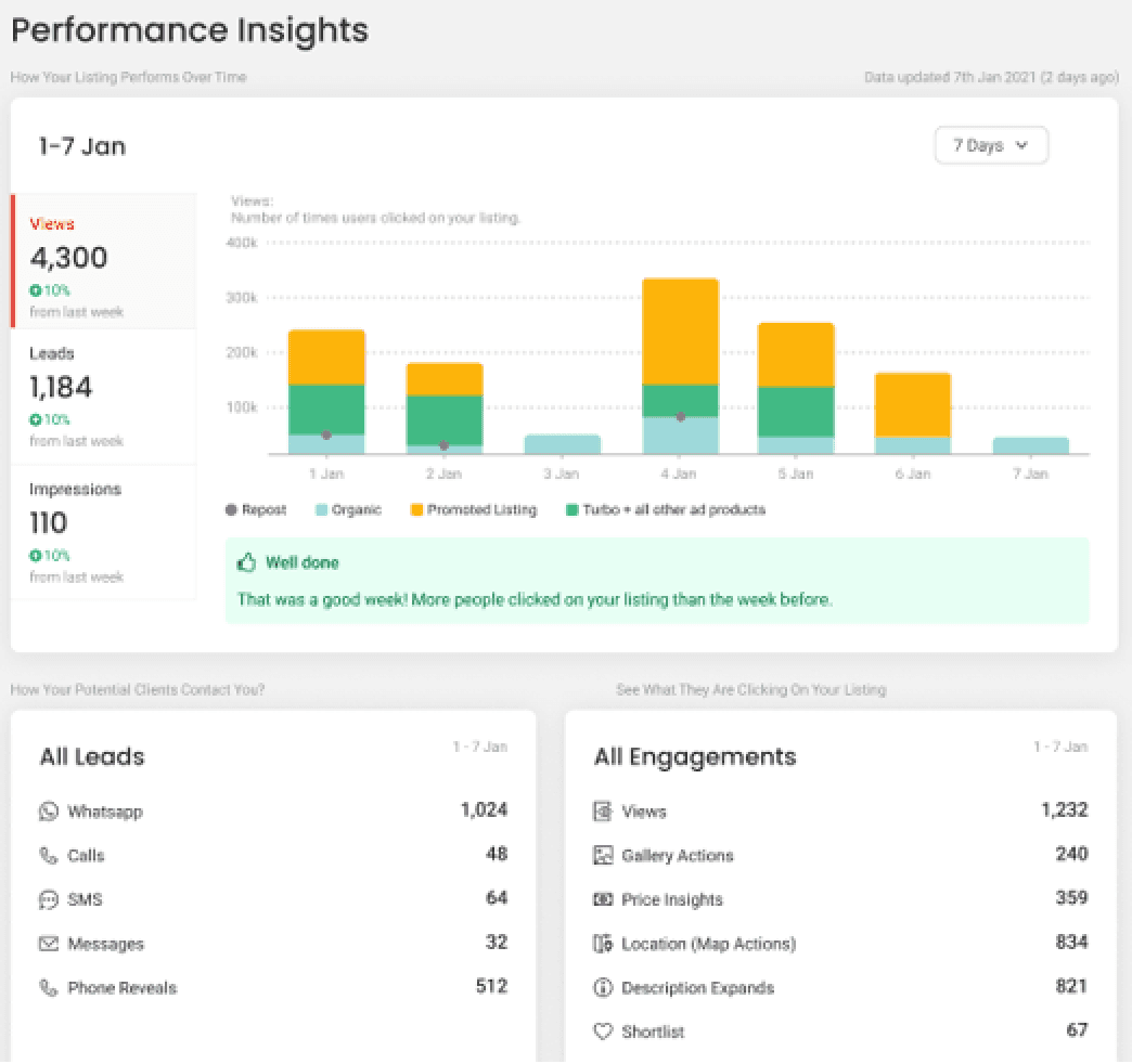 Because of the feature's limitations, Agents have to manually check their listing's performance from the insights. In Addition, they have to manually check and filter the messages from the platform and WhatsApp.